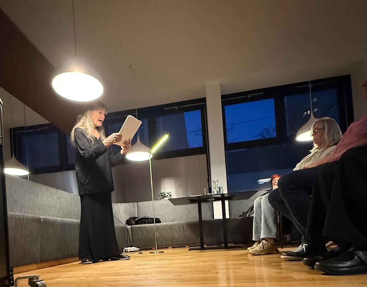 Der gemütliche Klubraum des hiphauses war bis auf den letzten Platz gefüllt, als die Schauspielerin Petra Fahrnländer zur Lesung der „Legende vom 4. König“ einlud. Mit großer Ausdruckskraft, emotionaler Tiefe und beeindruckender Präsenz gelang es ihr, das Publikum von der ersten Minute an in den Bann der bewegenden Geschichte zu ziehen. Die einfühlsame Klaviermusik von Olha Chubai umrahmte die Lesung auf berührende Weise. Mit herzlichen Worten bedankte sich Missio-Referentin Sr. Marcellina Nickl bei den zahlreichen Gästen und gab Einblicke in das Schulbauprojekt in Nigeria, das durch den Erlös des Abends unterstützt wird.