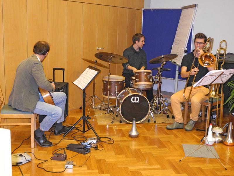 Musikalisch umrahmt wurde die Vernissage von der „All Our Beloved Saints Combo“, die unter der Leitung von P. Jakob Deibl OSB aus dem Stift Melk mit einfühlsamen und ausdrucksstarken Musikeinlagen begeisterte.