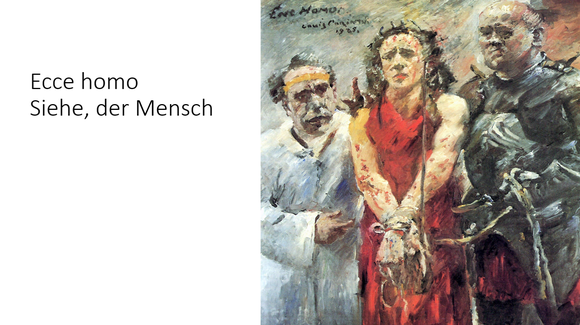 Das ursprüngliche Motiv und Zitat stammt aus der Schilderung "Jesus vor Pilatus" im Johannesevangelium und hat viel mit unserer aktuellen Gegenwart zu tun: